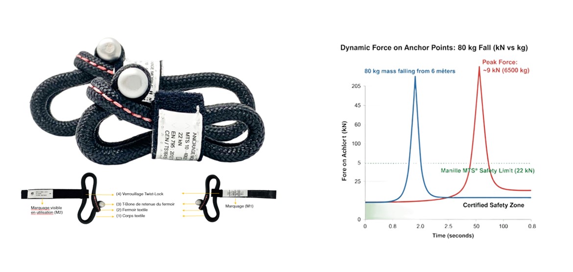 La Manille MTS® (réf. 40021 T6) est un dispositif d’ancrage mobile textile conçu en Dyneema® DSK78. Véritable concentré de technologie, elle remplace avantageusement les mousquetons lourds et les liens de fortune non certifiés.
